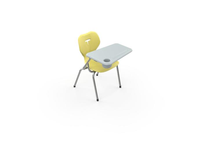 Silla ergonómica, resistente y flexible. El diseño innovador de la tabla facilita el uso de dispositivos electrónicos tipo tablet, además de permitir al usuario depositar su botella.