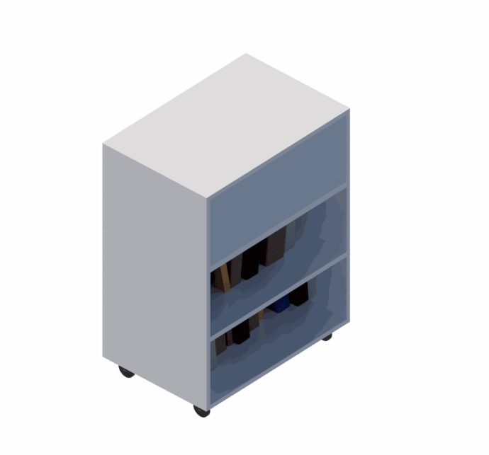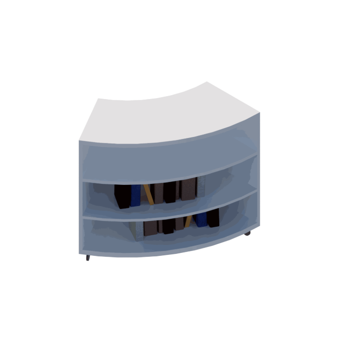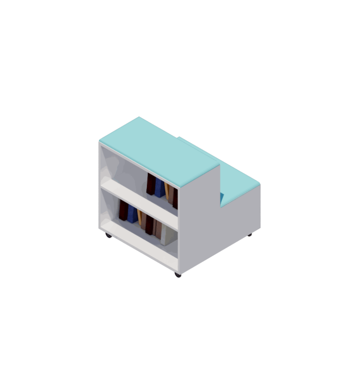 Biblioteca modular, curva y recta. Gracias a su diseño innovador este artículo permite generar múltiples configuraciones espaciales para personalizar los entornos de aprendizaje.